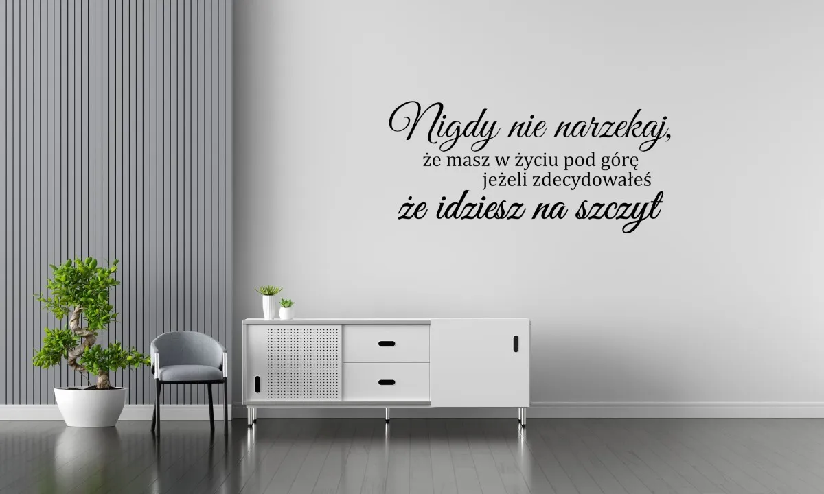 Chcesz szybko i efektownie odmienić wygląd swojego wnętrza? Naklejka na ścianę Nigdy nie narzekaj W41, to idealne rozwiązanie, które pozwoli Ci nadać przestrzeni wyjątkowy styl bez potrzeby przeprowadzania kosztownych remontów. Nasze dekoracyjne naklejki to połączenie estetyki, funkcjonalności i wysokiej jakości materiałów, dzięki czemu będą świetnym dodatkiem do każdego pomieszczenia.