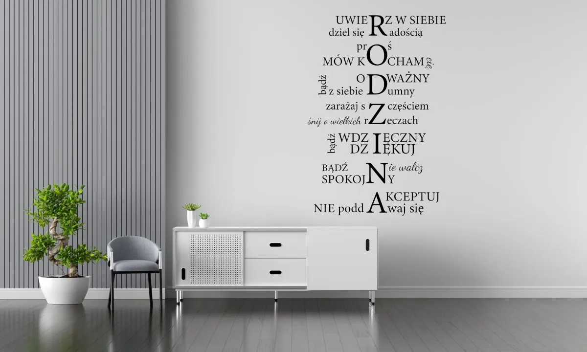 Chcesz szybko i efektownie odmienić wygląd swojego wnętrza? Naklejka na ścianę Rodzina W17, to idealne rozwiązanie, które pozwoli Ci nadać przestrzeni wyjątkowy styl bez potrzeby przeprowadzania kosztownych remontów. Nasze dekoracyjne naklejki to połączenie estetyki, funkcjonalności i wysokiej jakości materiałów, dzięki czemu będą świetnym dodatkiem do każdego pomieszczenia.