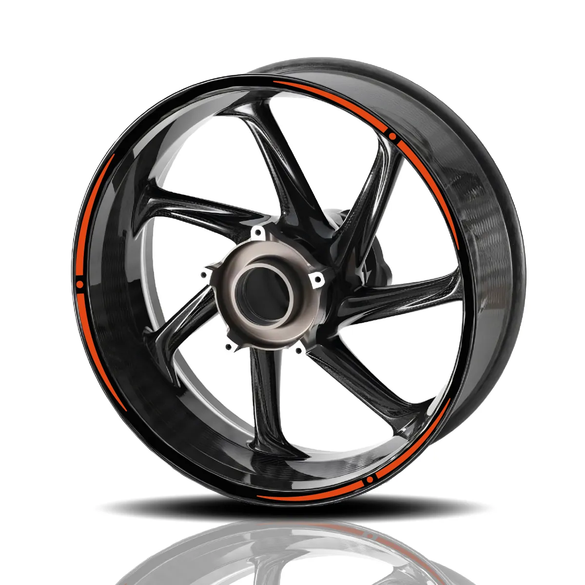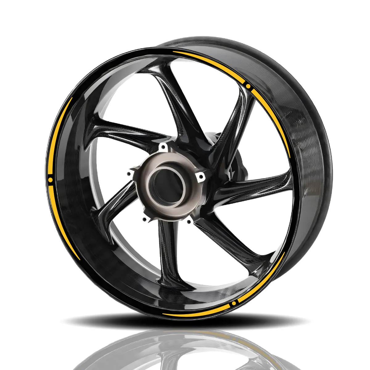 Prosta aplikacja idealna na każdą gładką powierzchnię – Paski świetnie przylegają do felg motocyklowych. Wystarczy odkleić naklejkę od arkusza i przykleić w wybrane miejsce