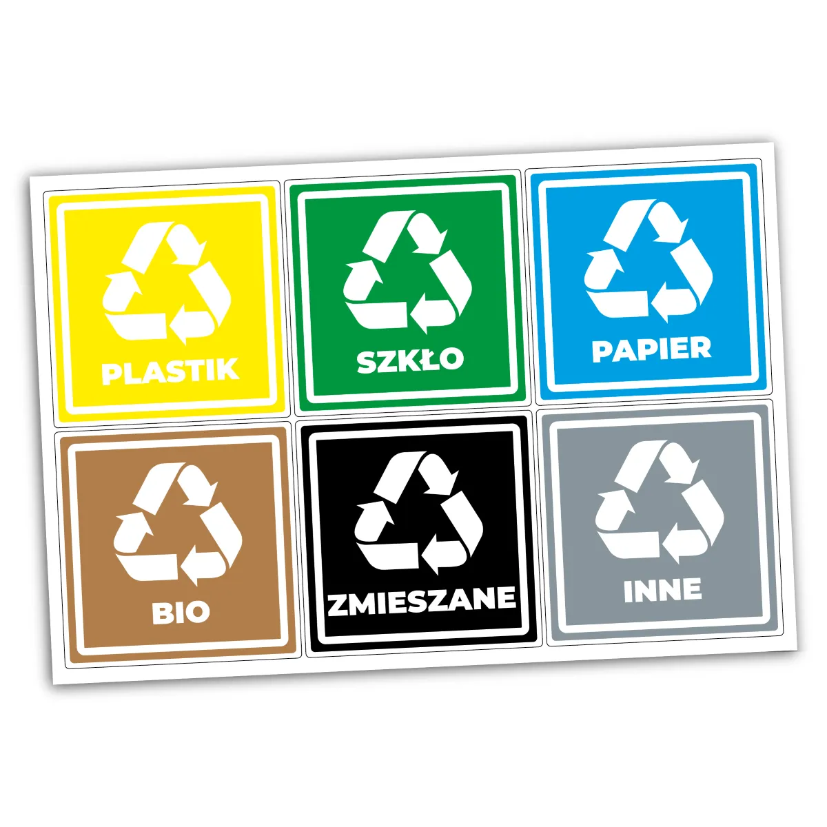 ♻️ Naklejki na kosze do segregacji 6 sztuk